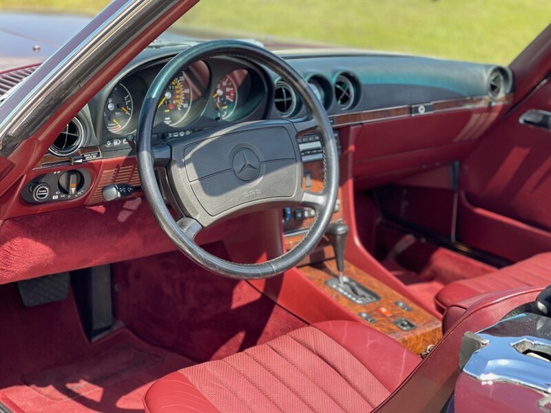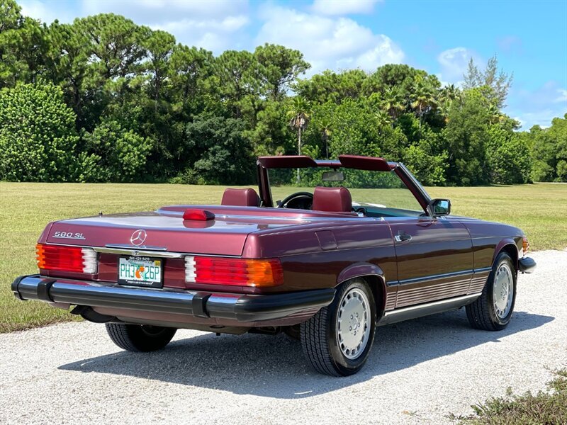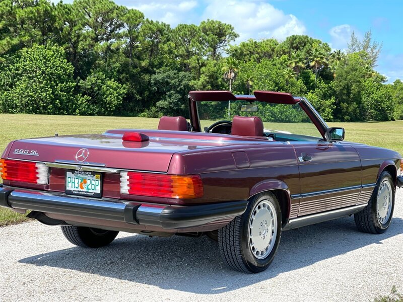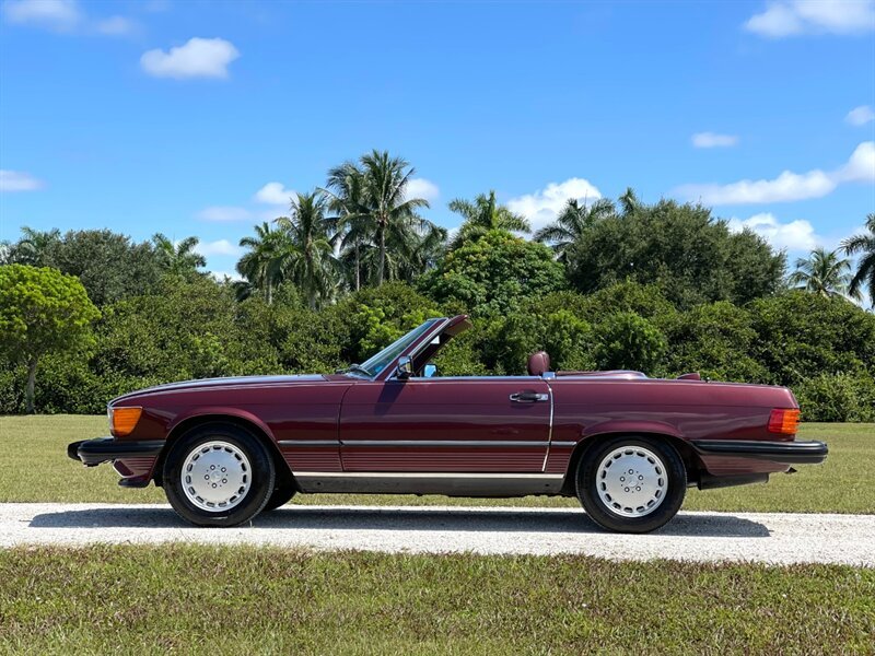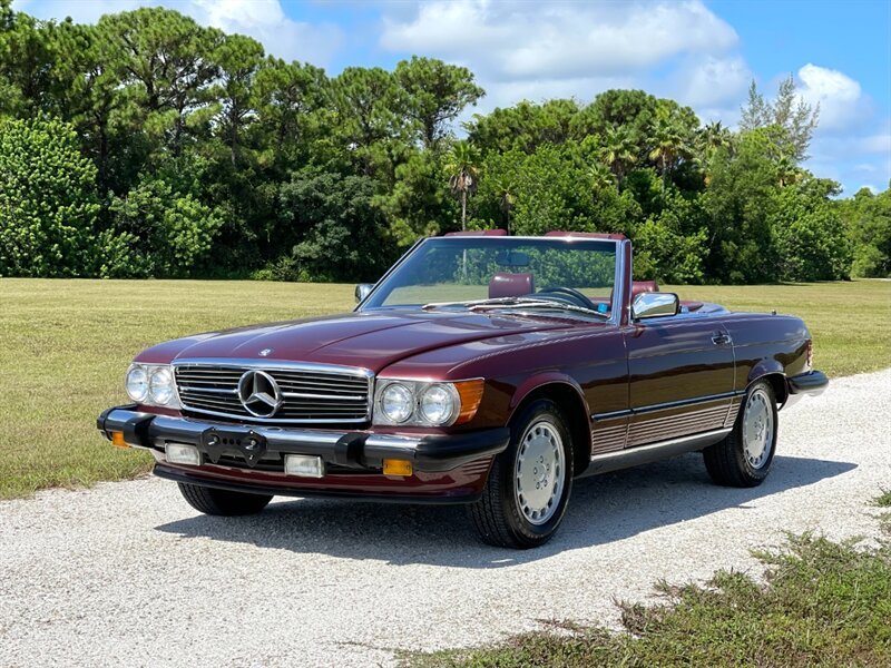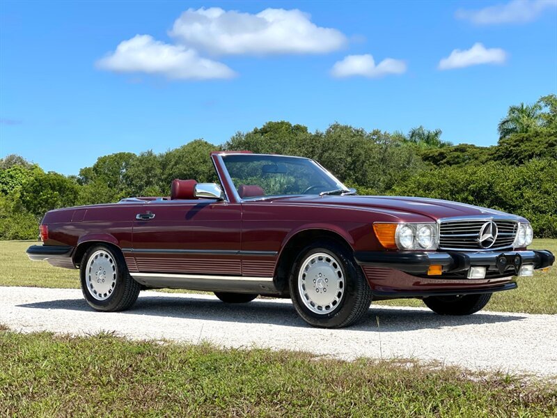 1987 Mercedes Benz 560SL low miles clean Carfax, rare desirable color combination Cabernet with Burgundy Leather interior, this car has just been serviced, New Front and rear Bilstein Shocks, New hood pad, New tires, Complete tune up including New ignition wires, spark plugs, distributor cap and rotor, oil and filter changed, runs and drives like new, cold A/C Just Serviced, hard top and Black soft top, books, Tools, 2 keys, Original Becker radio upgraded to with Bluetooth, 560SL's are at the top of one of the longest single model production by Mercedes Benz the R107, which lasted 18 years due to it success, these are classic cars with modern amenities like cruise control, air bag, power windows, modern air conditioner system and much more, this is why these classics are going up in value and desirability by collectors and enthusiasts, especially the good ones, please contact Unique Cars of Palm Beach for your next Mercedes SL, we have several color combinations all low miles and in excellent conditions, we can finance trough a major lender, $39,900 Please call 561-429-5459 or Cell 305-775-2234