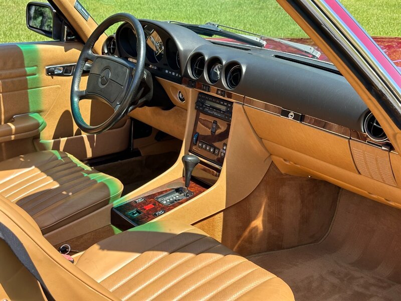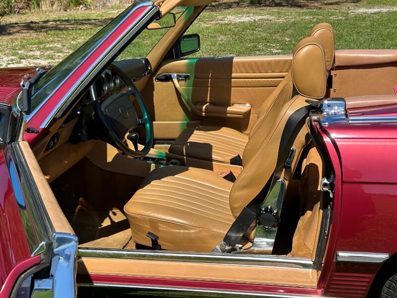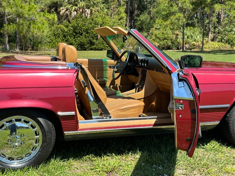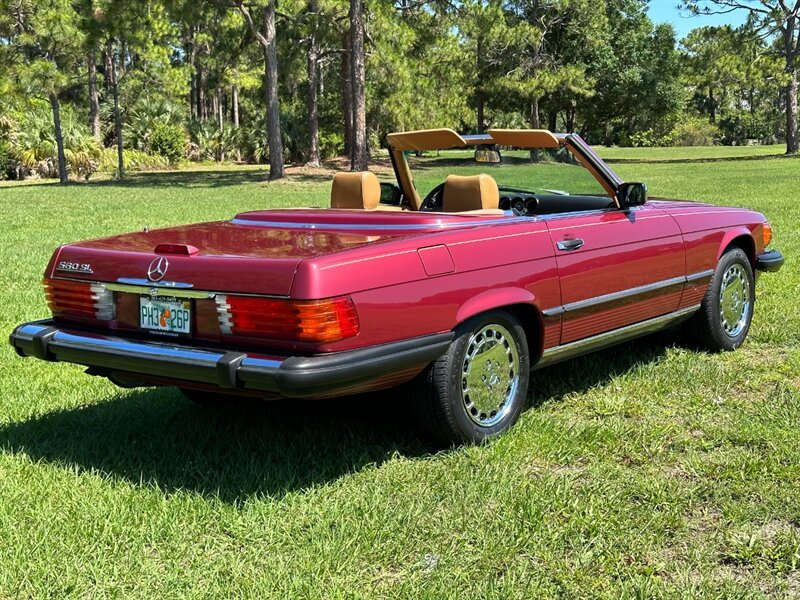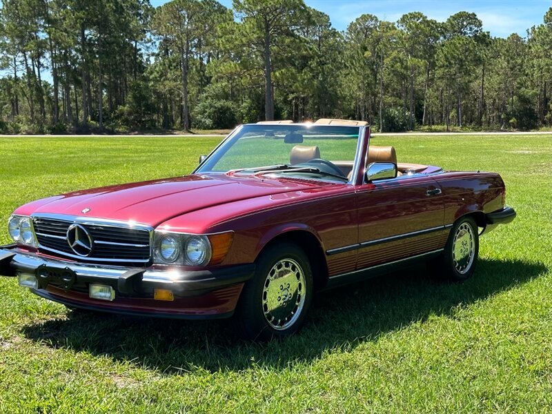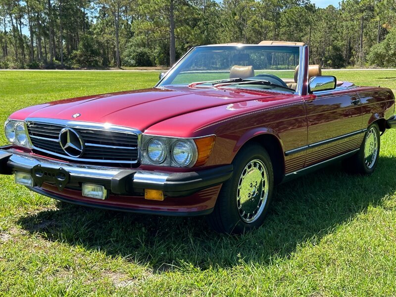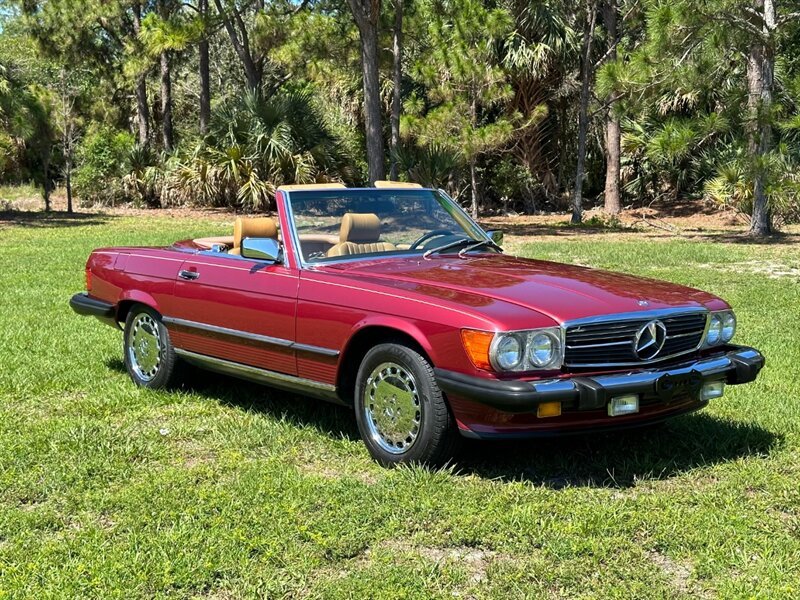 1989 Mercedes Benz 560SL, Great conditions low miles 50,095 on the odometer, Clean Carfax, Beautiful and Elegant Cabernet Red with Palomino Leather interior and Tobacco Brown Soft Top, Just serviced, New Pirelli tires, full engine tune up which includes distributor Rotor, cap, ignition wires and Spark plugs, oil and Filter Changed, new Shifter bushings, Serviced Cold A/C, New: Center steering arm, steering shock, New ty Rods, Four New Bilstein Shocks, New Brakes all around Rotors, pads, hoses and sensors, Ready to be enjoyed! has Matching color hard top and New soft top, Books, Keys, Drives Beautiful, Tools, service records, original Becker radio upgraded with Bluetooth, 560SL's are at the top of one of the longest single model production by Mercedes Benz the R107, which lasted 18 years due to it success, these are classic cars with modern amenities like cruise control, air bag, power windows, modern air conditioner system (blows Cold) and much more, this is why these classics are going up in value and desirability by collectors and enthusiasts, especially the good ones this car, is ready to be enjoyed! $45,900 Please call Unique Cars of Palm Beach 561-429-5459 or Cell 305-775-2234